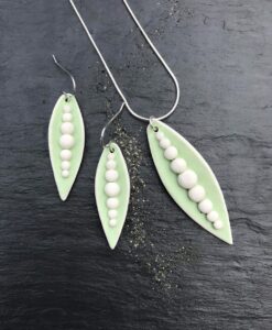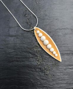 An elegant pendant design with dainty peas in a pod, 5cm drop. Available on a 16”, 18” or 20” silver snake chain, please select your size.