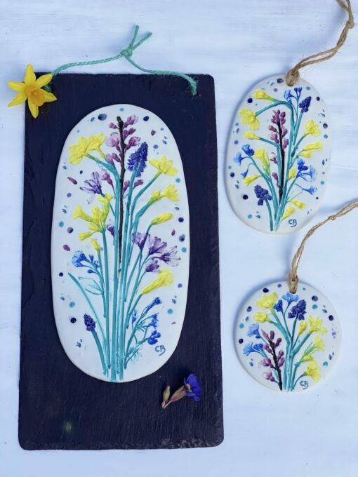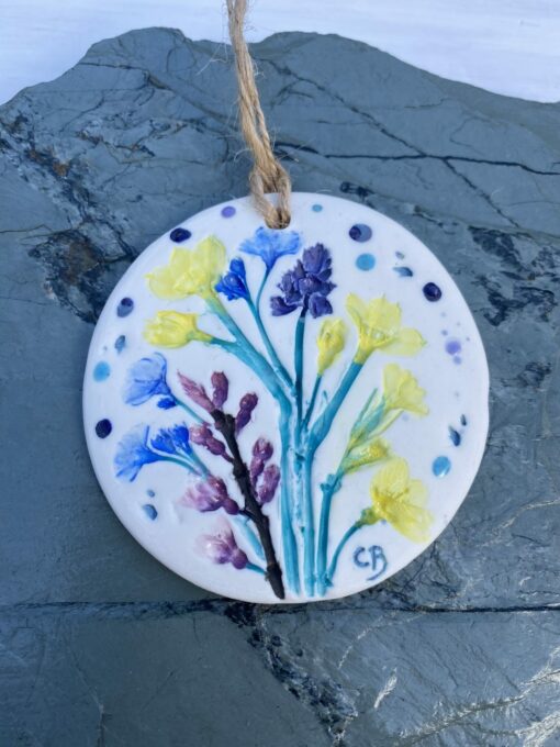An attractive porcelain plaque full of colour celebrating Dydd Gwyl Dewi (Saint David’s Day) and the beginning of spring.