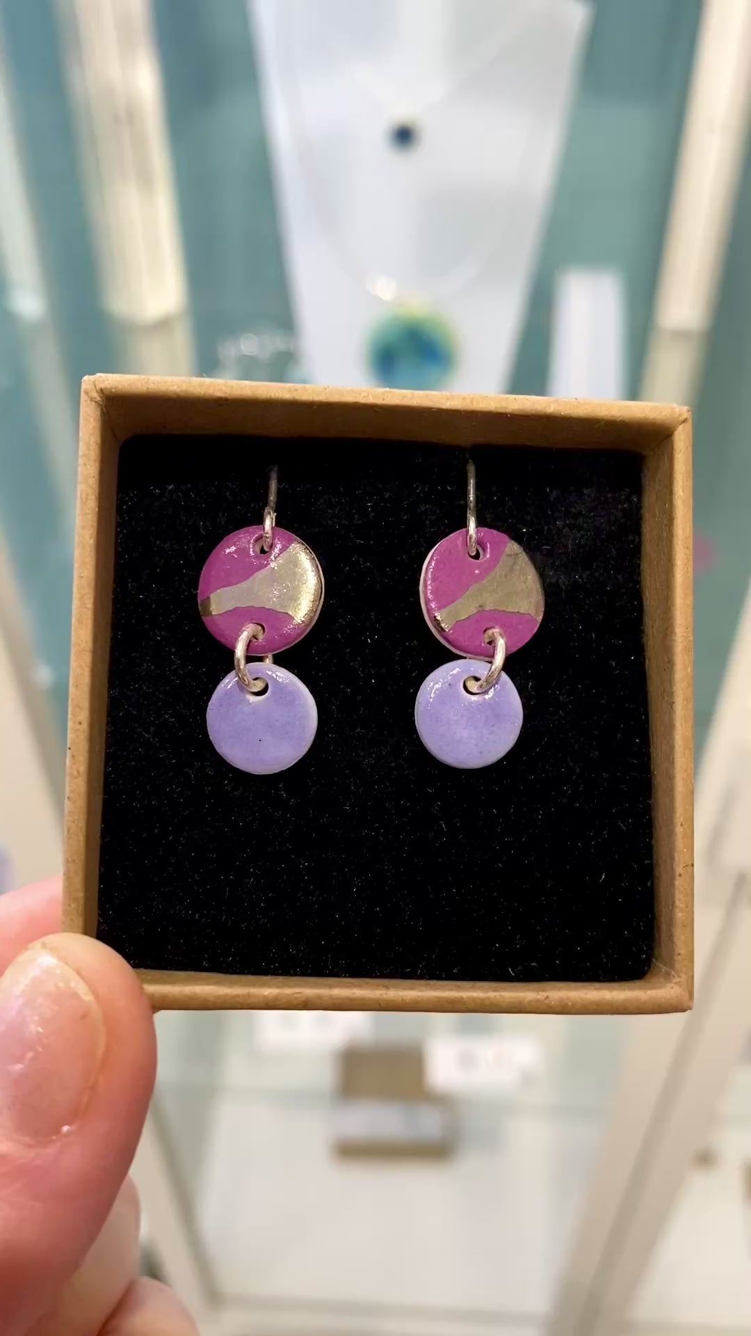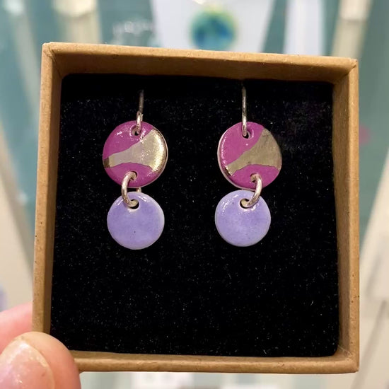 Colourful disc earrings with Platinum detailing with silver wire hooks. 2cm in length.