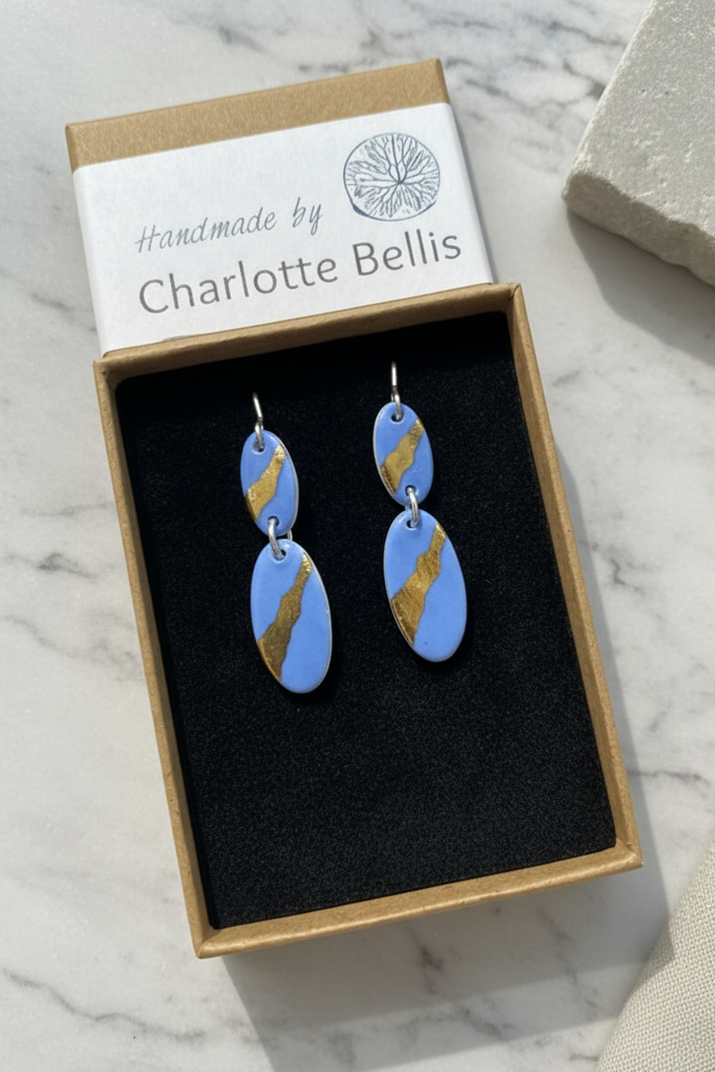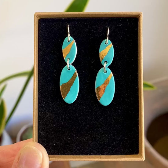 Oval Drop Earrings with 24ct Gold Detailing