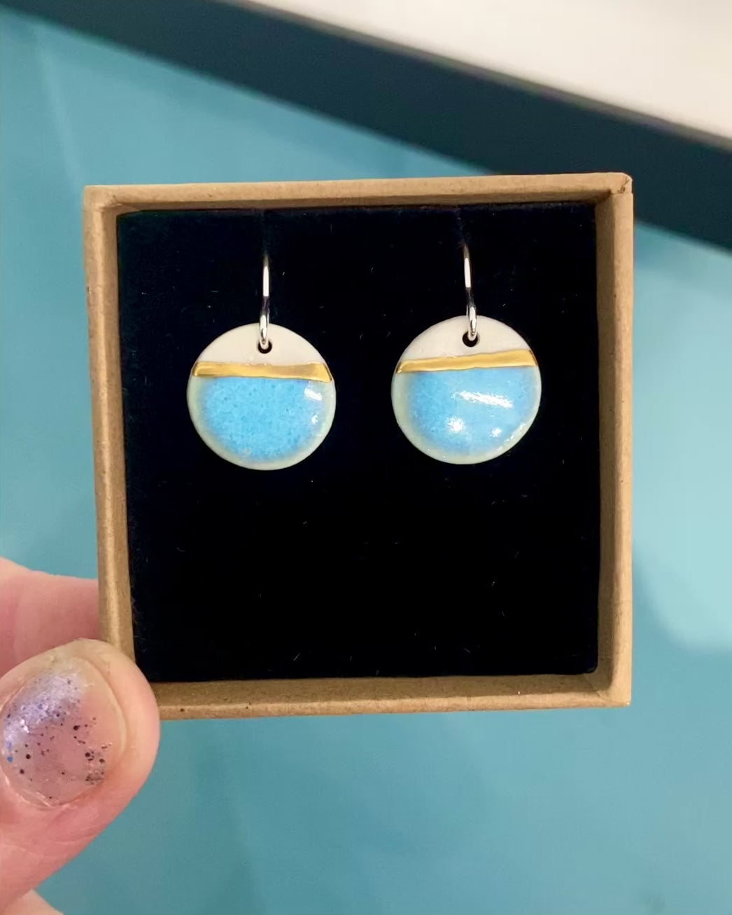 Sea Breeze disc earrings with 24ct gold lustre on silver earring hooks with rubber backings.