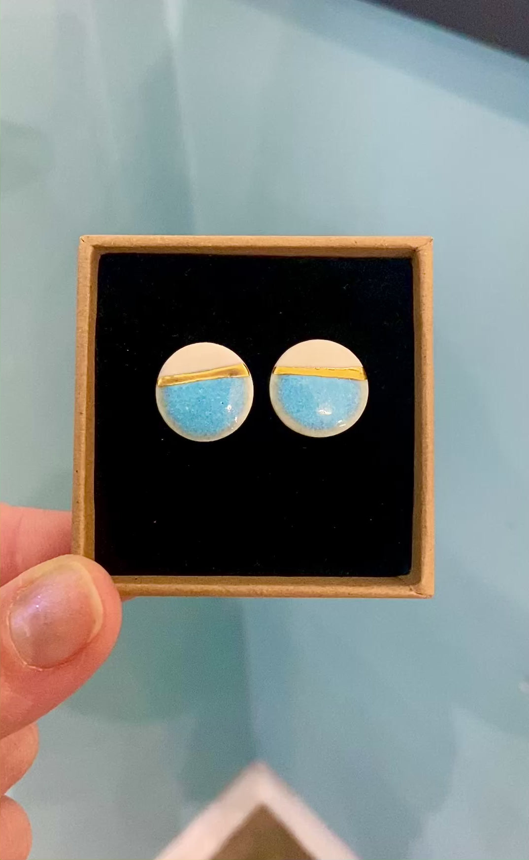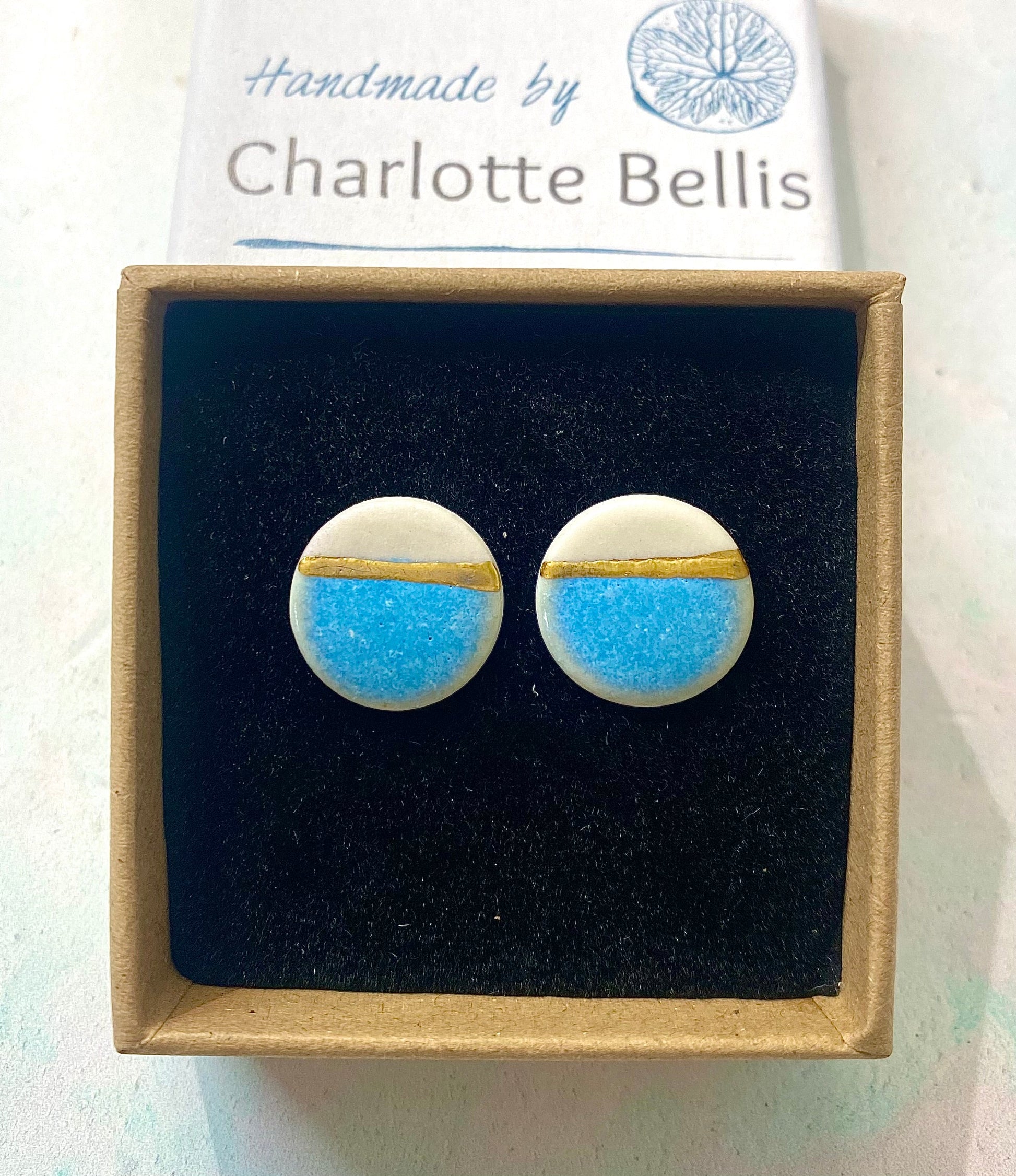 Sea Breeze stud earrings with 24ct gold lustre on silver stud and backings.